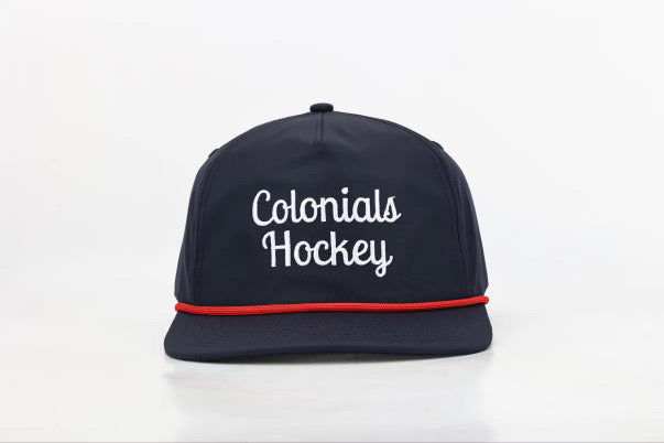 This navy rope hat brings the Driftwood Tidal look to the Colonials lineup. With a bold red rope, structured crown, and crisp white embroidery reading Colonials Hockey, it’s equal parts vintage and athletic. Lightweight, breathable, and built to stand out on and off the ice.
