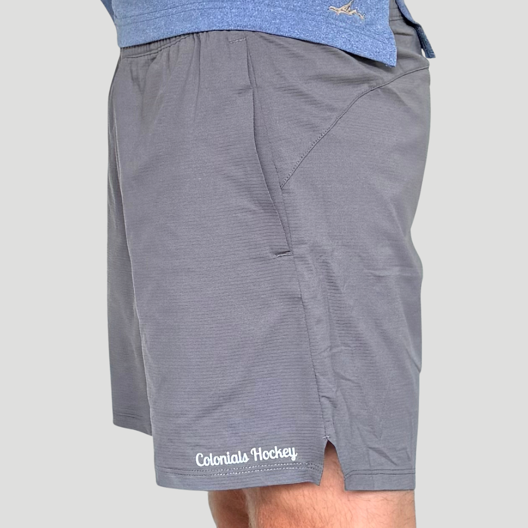 Built for the gym, the rink, or just hanging out. The Colonials Grey Shorts combine comfort and function with breathable fabric, two side pockets, and a back zipper pocket for secure storage. Rep your team wherever you go with Colonials Hockey detail on the leg.